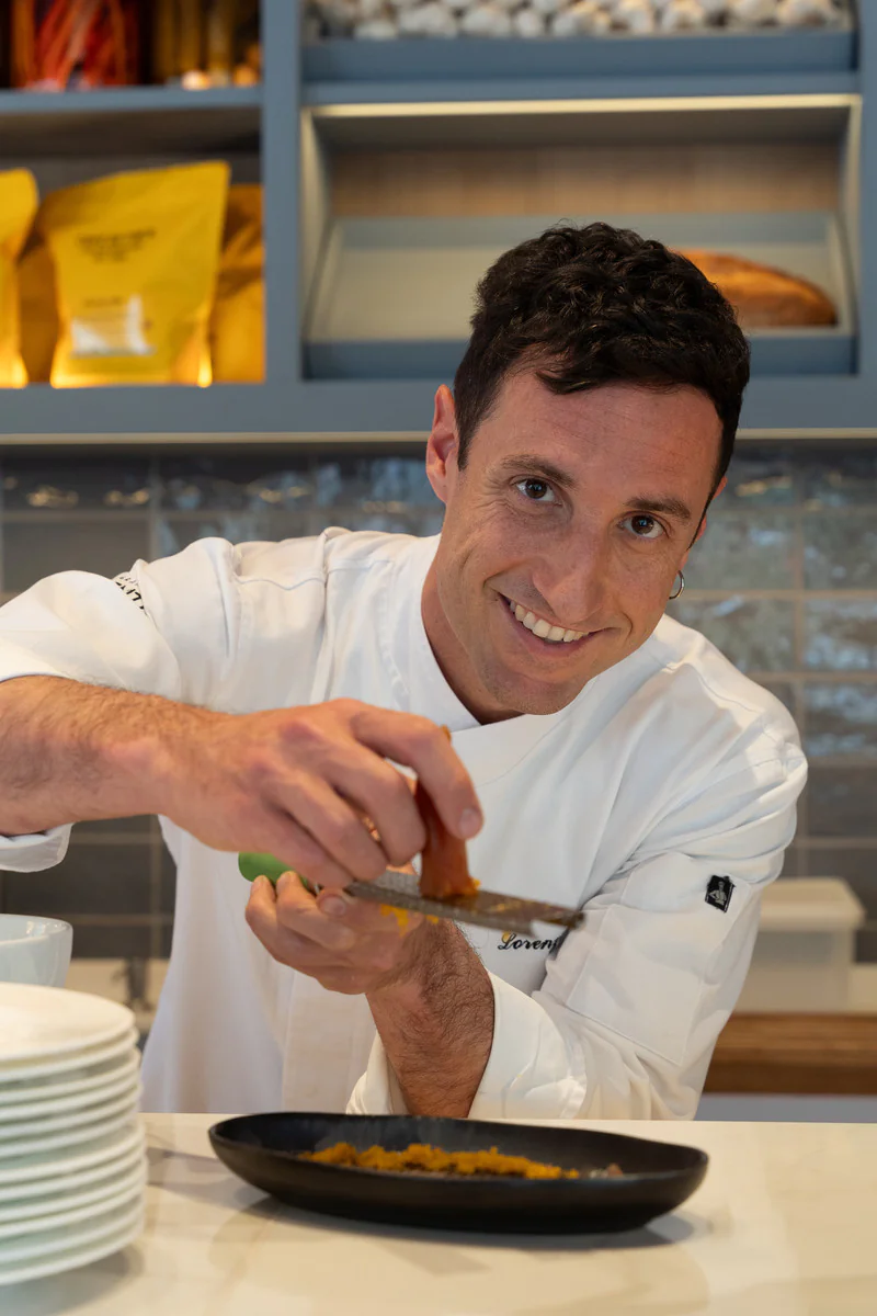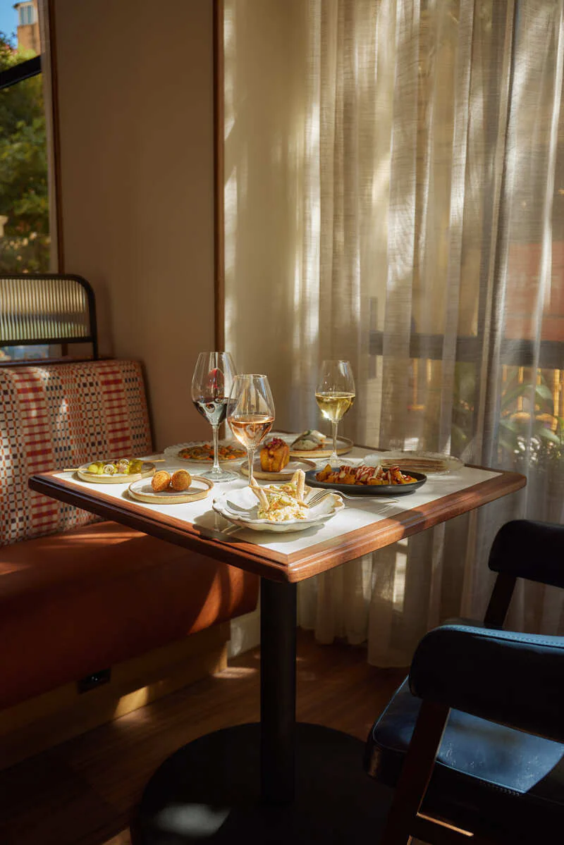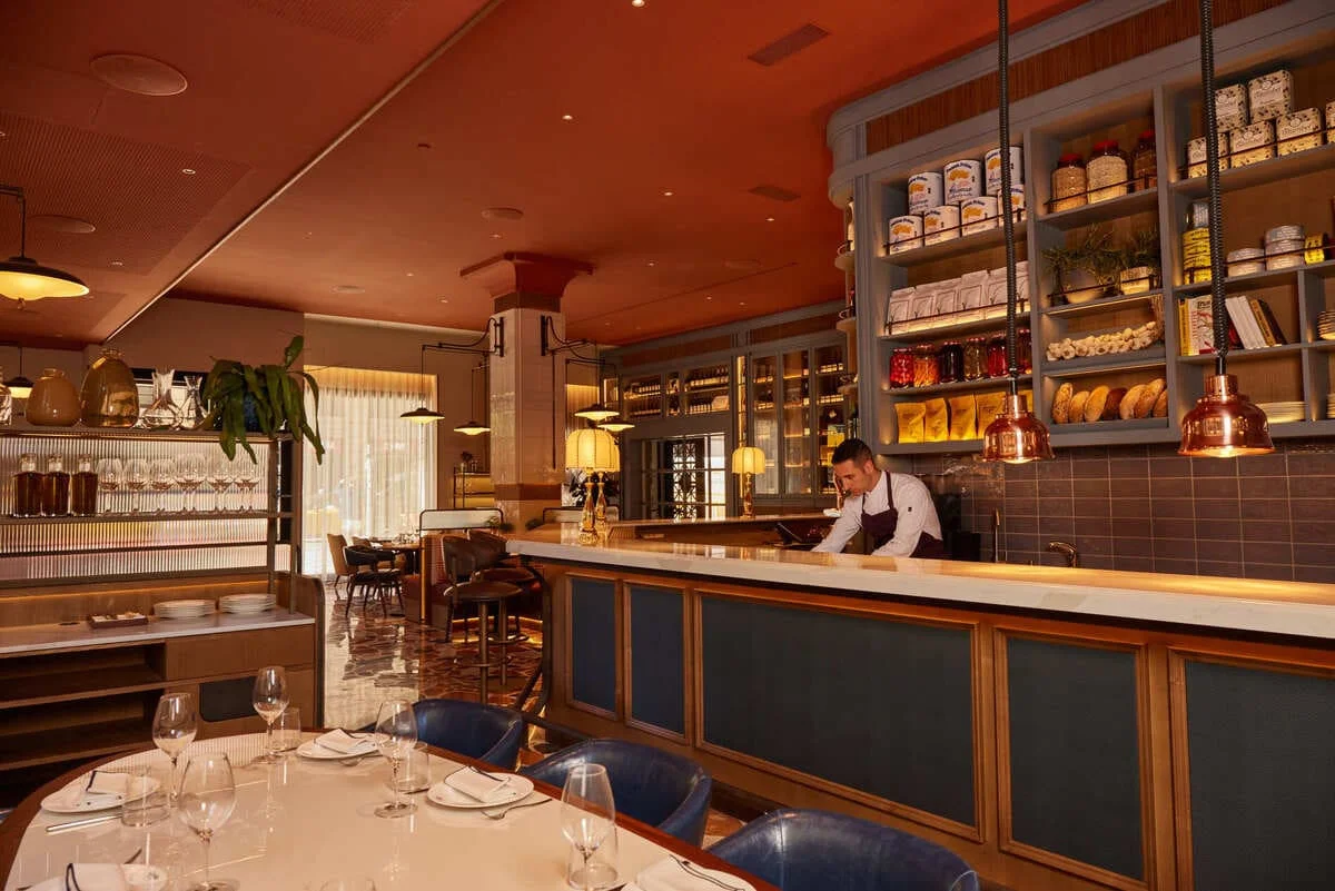 El restaurante ha sido diseñado por el estudio londinense Sagrada y se distingue por su elegante decoración de estilo mediterráneo, grandes ventanales que llenan de luz natural el espacio y un ambiente acogedor, ideal para disfrutar en pleno corazón de Ciutat Vella.